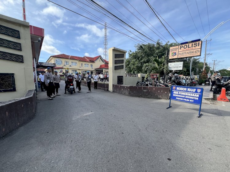 Tim yang tiba di Mako Polresta Kupang Kota, langsung melaksanakan pemeriksaan kendaraan bermotor roda dua dan roda empat milik personel yang hendak memasuki lingkungan kantor, meliputi kelengkapan fisik kendaraan serta kelengkapan administrasi berupa SIM dan STNK.