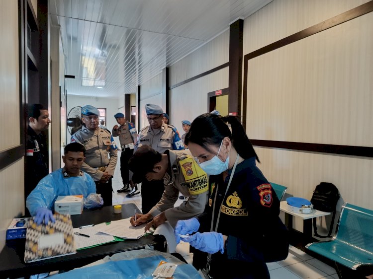 Selain pemeriksaan administrasi dan sikap tampang, juga dilakukan pemeriksaan urine secara acak terhadap puluhan personel Polresta Kupang Kota.