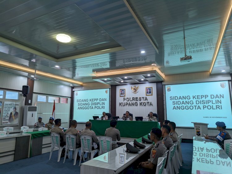 Tribratanewskupangkota.com — Polresta Kupang Kota menggelar sidang disiplin terhadap enam anggotanya di Aula Bijaksana Polresta Kupang Kota, Kamis (6/11/2025) siang.