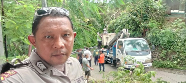 Tribratanewskupangkota.com — Tak hanya menjaga keamanan dan ketertiban, anggota kepolisian juga aktif berperan dalam menangani dampak bencana alam demi kesejahteraan masyarakat. Hal itu terbukti ketika Bripka Wens Reba Mesa, Bhabinkamtibmas Kelurahan Airnona, Polsek Kota Raja, Polresta Kupang Kota, langsung turun tangan mengamankan serta turut berpartisipasi dalam kegiatan penebangan dan pembersihan pohon tumbang, akibat serangan angin kencang pada hari Rabu (21/1/2026) siang, hingga prosesnya tuntas.