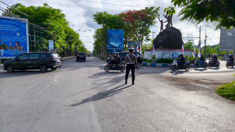 Jaga Kelancaran Arus, Satlantas Polresta Kupang Kota Lakukan Pengaturan Lalin di Beberapa Titik Strategis.