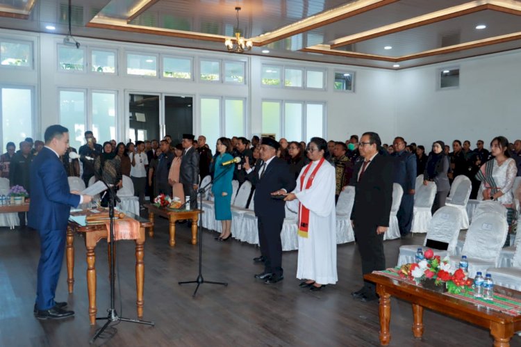 Tribratanewskupangkota.com — Kapolresta Kupang Kota Kombes Pol. Djoko Lestari, S.I.K., M.M, menghadiri acara Pelantikan Pengambilan Sumpah Jabatan Pengangkatan Pejabat Pimpinan Tinggi Pratama Sekretaris Daerah (Sekda) Kota Kupang, yang dilakukan oleh Wali Kota Kupang dr. Christian Widodo, kepada Sekda Definitif Jefry Edward Pelt, S.H.