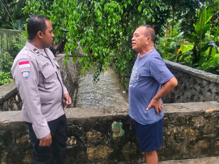 Tribratanewskupangkota.com — Bhabinkamtibmas Polsek Kota Raja, Polresta Kupang Kota dari dua kelurahan di Kecamatan Kota Raja, tetap waspada memantau potensi bencana banjir dan tanah longsor saat hujan turun dengan intensitas yang cukup lebat. Upaya ini dilakukan untuk memastikan keamanan warga di sekitarnya.