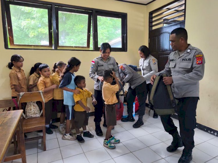 Peduli Pendidikan, Polresta Kupang Kota Salurkan Bantuan Perlengkapan Sekolah bagi Siswa Kurang Mampu di SD Negeri Pasir Panjang.