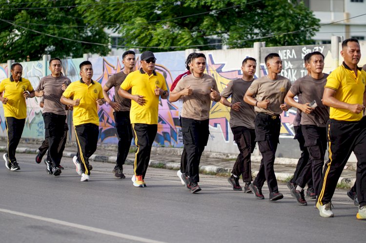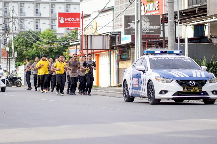 Selanjutnya dilakukan pengecekan tekanan darah dan kondisi kesehatan secara umum, pemanasan tubuh dan dilanjutkan dengan lari santai menuju Mapolresta Kupang Kota.