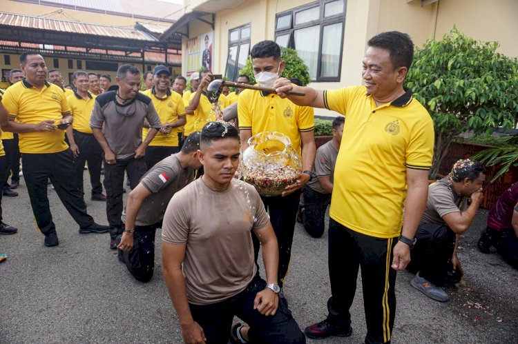Tiba di mako, pembinaan tradisi ditandai dengan penyiraman air kembang kepada para perwira dan bintara.