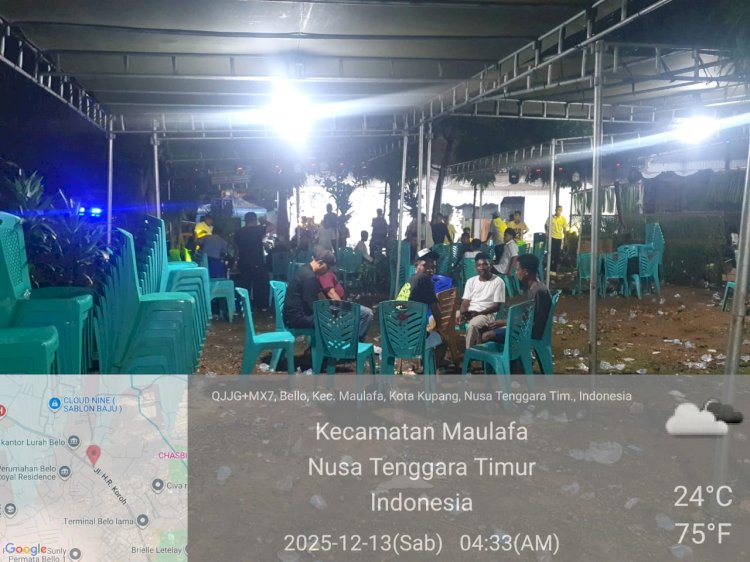 Tribratanewskupangkota.com — Kepedulian dan respons cepat jajaran Polsek Maulafa, Polresta Kupang Kota kembali ditunjukkan pada (Sabtu, 13/12/2025) dini hari, sebuah aduan warga melalui nomor WhatsApp Kapolsek Maulafa, AKP Fery Nur Alamsyah, S.H, berisi keluhan terkait suara musik pesta yang sangat mengganggu ketertiban dan kenyamanan warga di Kelurahan Bello.