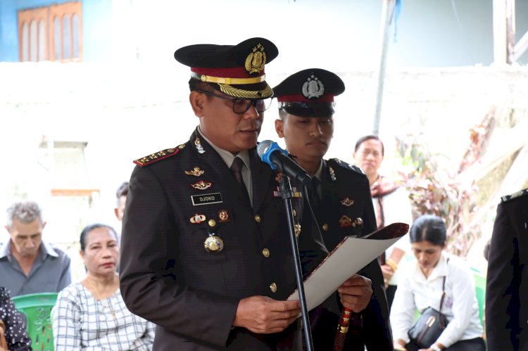 Upacara kedinasan tersebut dipimpin oleh Kapolresta Kupang Kota, Kombes Pol. Djoko Lestari, S.I.K., M.M, sebagai bentuk penghormatan terakhir dari negara dan Polri atas jasa serta pengabdian almarhum selama bertugas.