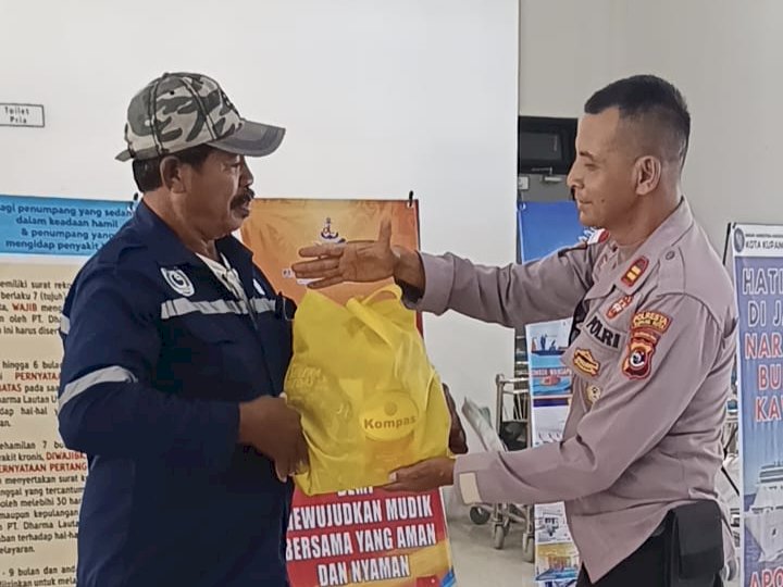 "Di sela sela kegiatan sosialosasi, kami juga memberikan 120 paket sembako kepada Porter baik di pelabuhan dan di bandara, Office Boy (OB), para Ojek Online (Car atau Bike) serta kepada masyarakat yang berada di perkampungan nelayan" lanjut Kombes Djoko Lestari.