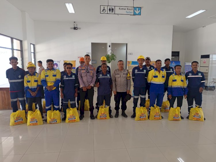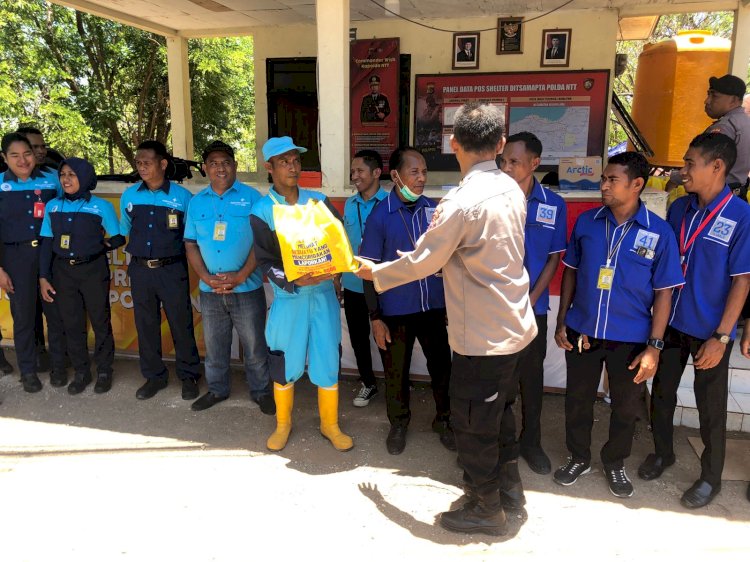 Tribratanewskupangkota.com - Anggota Polresta Kupang Kota yang ditempatkan di KP3 Laut Tenau Kupang dan di KP3 Bandara Udara El Tari Kupang Kamis, (23/10/2025) pagi, lakukan Sosialisasi People Smuggling (penyelundupan manusia) sekaligus Pembagian Sembako.
