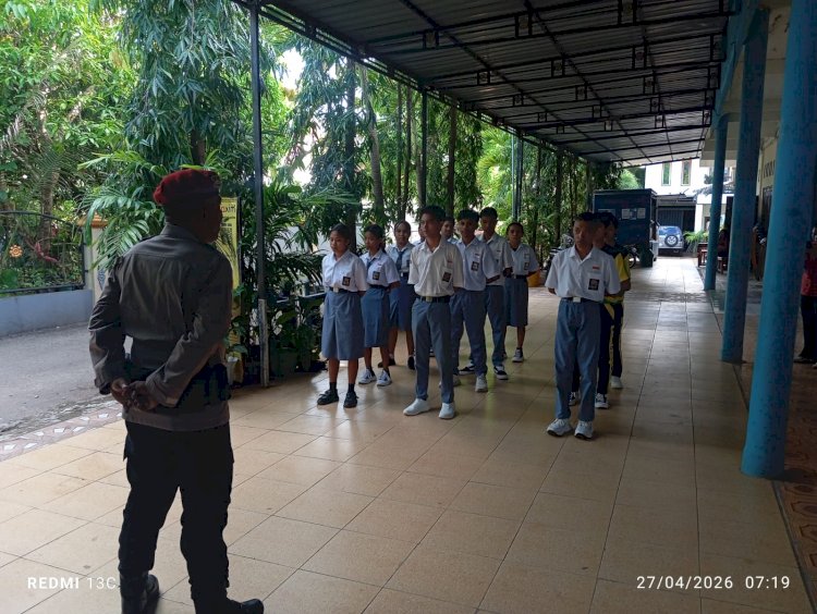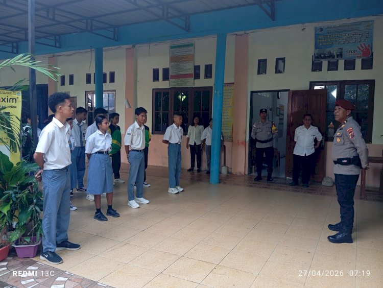 Tribratanewskupangkota.com — Ps. Kanit Reskrim Polsek Alak, Polresta Kupang Kota, IPDA Frengky Patolla, S.H bersama Bhabinkamtibmas Kelurahan Manulai II, AIPTU Boneventura Luma melaksanakan kegiatan imbauan kamtibmas di SMA Plus Masa Depan Mandiri, RT. 06 RW. 02, Kelurahan Manulai II, Kecamatan Alak, Kota Kupang, pada (Senin, 27/4/2026).