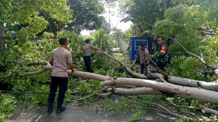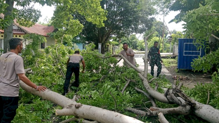 Polsek Alak Sigap Bersihkan Pohon Tumbang yang Halangi Akses Jalan di Kelurahan Penkase Oeleta.