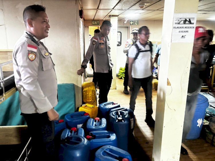 Polsubsektor Pelabuhan Tenau Amankan 350 Liter Miras Lokal dari Kapal Sabuk Nusantara 38