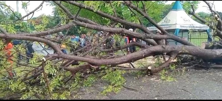 Pohon tumbang tersebut sempat menyebabkan kemacetan panjang karena menutup penuh akses jalan utama, bahkan seorang pengendara sepeda motor alami luka ringan akibat tertimpa ranting pohon yang tumbang.