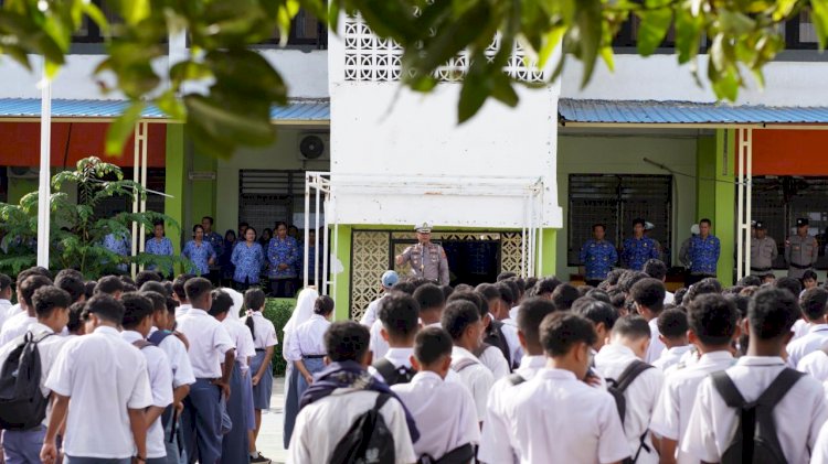 Satlantas Polresta Kupang Kota Ajak Pelajar SMKN 2 Kota Kupang Tertib Berlalu Lintas Lewat Sosialisasi Kamsel