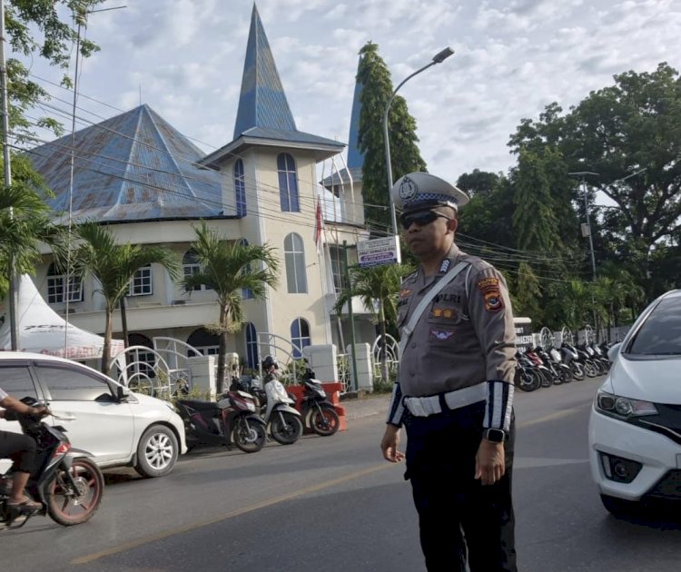 Satlantas Polresta Kupang Kota Lakukan Pengamanan dan Pengaturan Lalin di Sejumlah Gereja