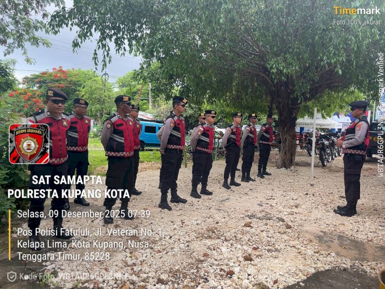 Tribratanewskupangkota.com — Personel Satuan Samapta (Satsamapta) Polresta Kupang Kota melaksanakan kegiatan rutin pengaturan Lalu Lintas (Lalin) di sejumlah titik strategis, seperti persimpangan jalan, kawasan padat aktivitas, serta daerah rawan kecelakaan. Kehadiran personel pada jam-jam sibuk di pagi hari ini, bertujuan memberikan rasa aman dan nyaman bagi masyarakat yang mulai beraktivitas.