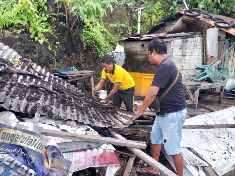 Bhabinkamtibmas Nunbaun Delha Sigap Bantu Warga Terdampak Bencana Angin Kencang