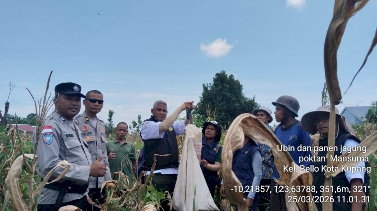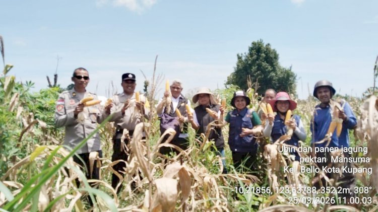 Tribratanewskupangkota.com — Dalam rangka mendukung program ketahanan pangan nasional, Kapolsek Maulafa, AKP Fery Nur Alamsyah, S.H., bersama jajaran Bhabinkamtibmas melaksanakan kegiatan panen raya jagung di dua lokasi berbeda di wilayah Kecamatan Maulafa, pada Rabu (25/03/2026) pagi.