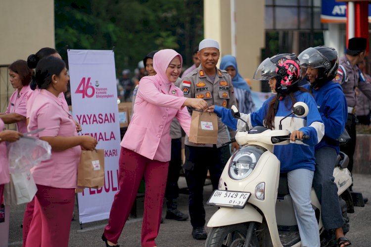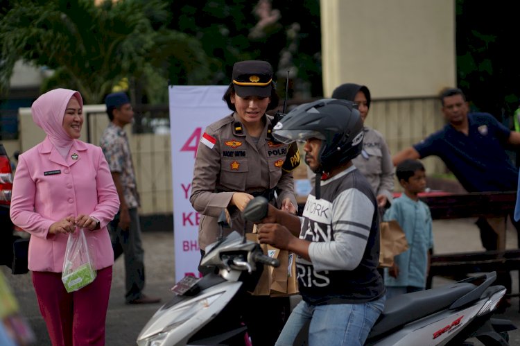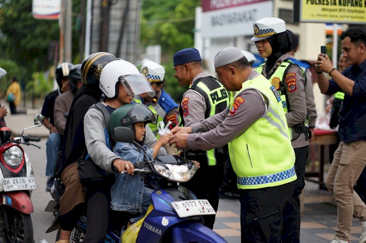 Indahnya Berbagi, Wakapolresta Kupang Kota Bersama Bhayangkari Bagikan Takjil Gratis bagi Pengendara.