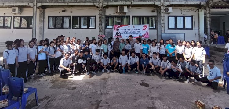 Tribratanewskupangkota.com — Suasana kekeluargaan dan dialog terbuka mewarnai kegiatan Jumat Curhat yang digelar Polda NTT di SMAK Generasi Unggul, Kelurahan Bello, pada Jumat pagi (24/4/2026). Kegiatan yang dipimpin langsung oleh Direktur Pembinaan Masyarakat (Dirbinmas) Polda NTT Kombes Pol. Sudartomo, S.IK, M.Si mewakili Kapolda NTT ini dihadiri oleh sekitar 100 orang yang terdiri dari guru, siswa-siswi, serta warga sekitar.