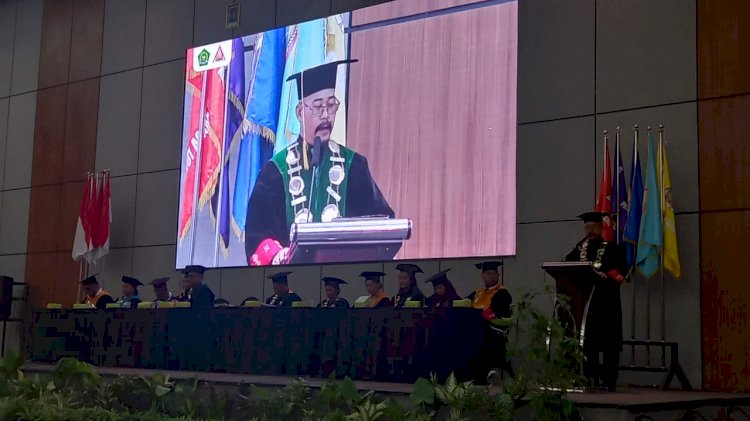 Selanjutnya, Dr. Iswanto, M.Hum, menyampaikan orasi ilmiah dengan judul “Kajian Semiotik: Teks, Reference, Attribute, Authentifikasi Dalam Komunitas Kristen”. Puncak acara adalah pembacaan Keputusan Rektor tentang Kelulusan dan pelantikan para wisudawan.