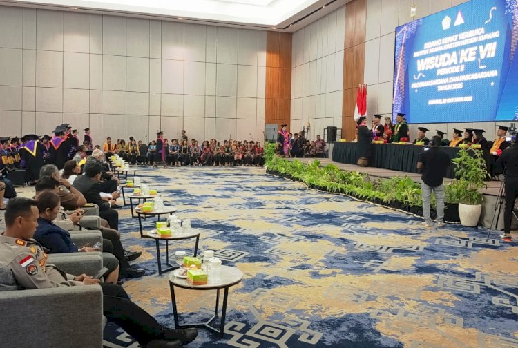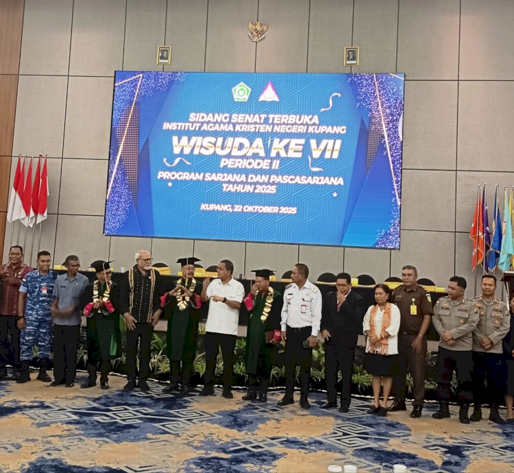 Tribratanewskupangkota.com — Kapolsek Maulafa, AKP Fery Nur Alamsyah, S.H, didampingi Kasihumas Polsek Maulafa, AIPTU David Luhi menghadiri acara Sidang Senat Terbuka Institut Agama Kristen Negeri (IAKN) Kupang, Wisuda Ke VII Periode II Program Sarjana dan Pasca Sarjana Tahun 2025, yang berlangsung khidmat di Hotel Harper, Kelurahan Fatululi, Kecamatan Oebobo, Kota Kupang, pada Rabu (22/10/2025).
