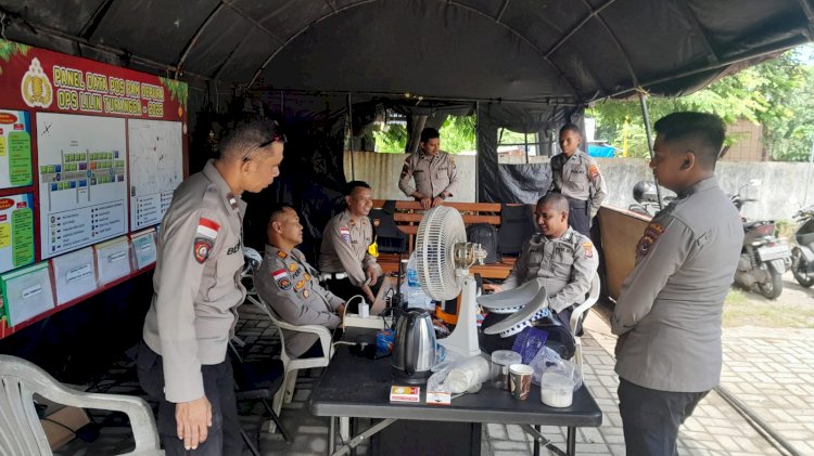 AKP Fery Nur Alamsyah melakukan pengecekan langsung terkait situasi keamanan di sekitar pos, serta kesiapan personel yang bertugas.