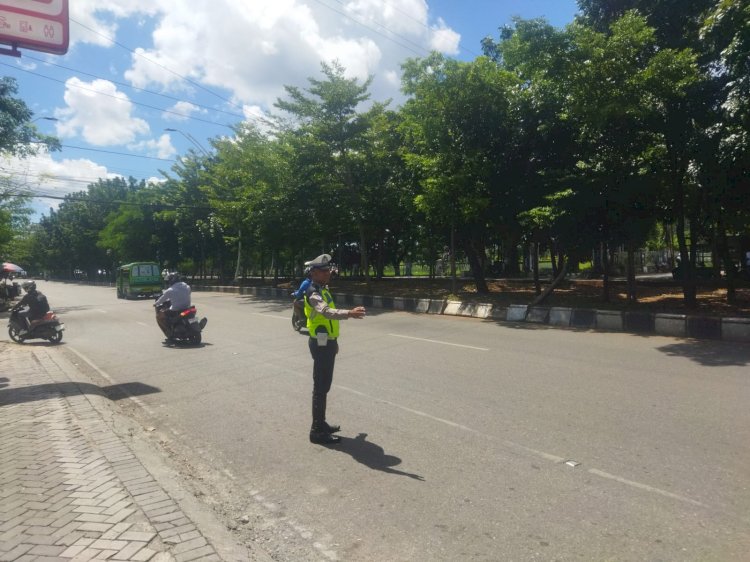 Kegiatan tersebut meliputi pengaturan arus lalu lintas, pemantauan situasi Kamtibmas di sekitar lokasi, serta memberikan imbauan kepada masyarakat guna menjaga keamanan dan ketertiban selama rangkaian Hari Raya Paskah.