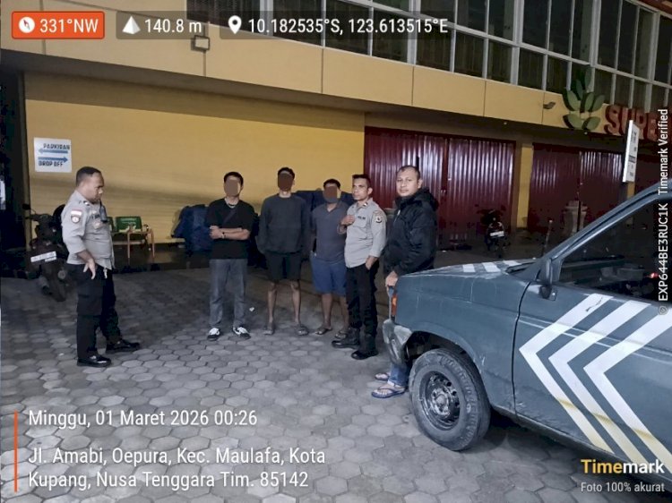 Tribratanewskupangkota.com — Personel Polsek Maulafa, Polresta Kupang Kota melaksanakan kegiatan Patroli Lampu Biru dan Cipta Kondisi pada Minggu (1/3/2026) dini hari. Patroli yang dipimpin oleh KSPKT I AIPDA Beng Bilistolen ini, menyusuri sejumlah ruas jalan di Kecamatan Maulafa, Kota Kupang, guna mengantisipasi gangguan Keamanan dan Ketertiban Masyarakat (Kamtibmas).