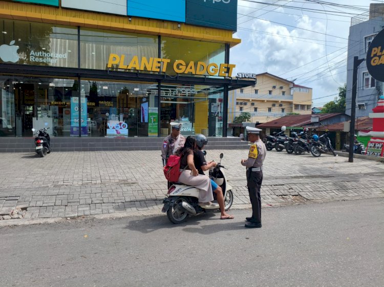 Personel Posyan Terpadu Zebra Kuanino, Beri Teguran Humanis kepada Pengendara Tanpa Helm.