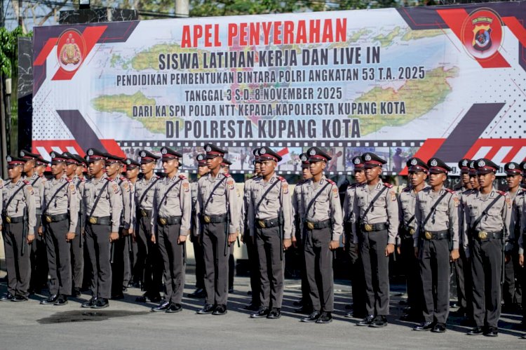 Tribratanewskupangkota.com — Kapolresta Kupang Kota, Kombes Pol. Djoko Lestari, S.I.K., M.M, memimpin upacara penerimaan Siswa Latihan Kerja (Latja), Diktukba Polri Tahun Anggaran 2025 SPN Polda NTT, bertempat di Lapangan Apel Mapolresta Kupang Kota, (Sabtu, 1/11/2025).