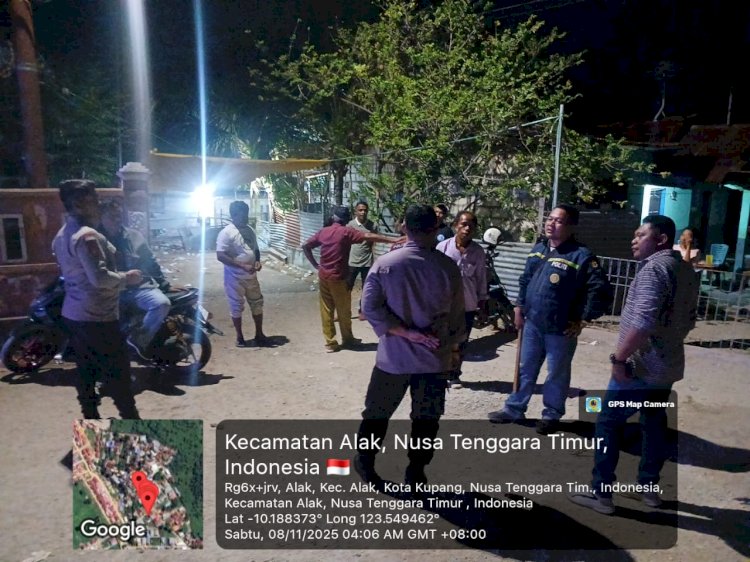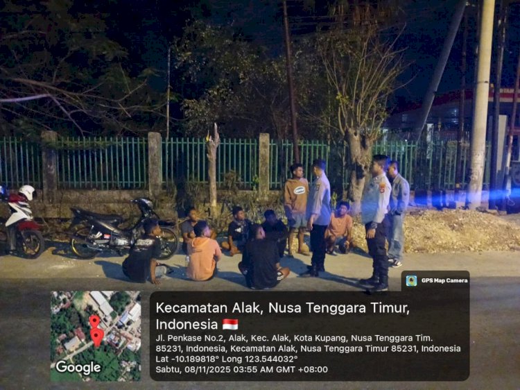 Tribratanewskupangkota.com — Pada (Sabtu, 8/11/ 2025) dini hari, personel piket Polsek Alak, Polresta Kupang Kota yang dipimpin oleh Kepala SPKT III AIPTU I Kadek Mardiana, melaksanakan kegiatan patroli dialogis cipta kondisi di wilayah hukum Polsek Alak. Patroli ini dilakukan untuk memantau situasi kamtibmas, serta memastikan keamanan dan ketertiban masyarakat pada malam hari tetap terjaga.