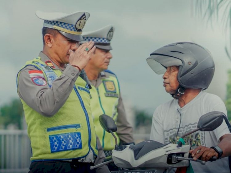 Satlantas Polresta Kupang Kota Berikan Imbauan Humanis Tertib Lalu Lintas di Bundaran Tirosa