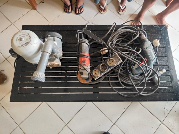 Total tiga pelaku berhasil diamankan, yakni I (17), R (18), dan M (17). Adapun barang bukti yang berhasil diamankan, antara lain satu unit mesin pompa air merk Sanyo, satu unit mesin gerinda merk Maktec, satu unit bor listrik merk Bosch, serta kabel listrik sepanjang kurang lebih 20 meter, yang seluruhnya diambil dari rumah korban.